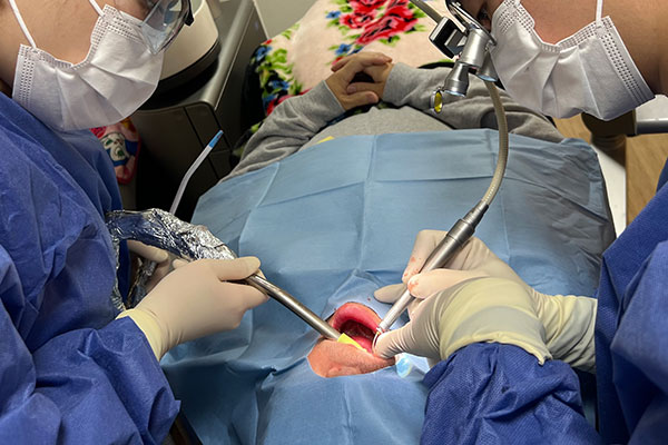 12,#13相当部は、ピエゾにて骨を切削し埋入位置を確認後、ドリリングにて必要な径と深さまで拡大しインプラント体を埋入していきます。