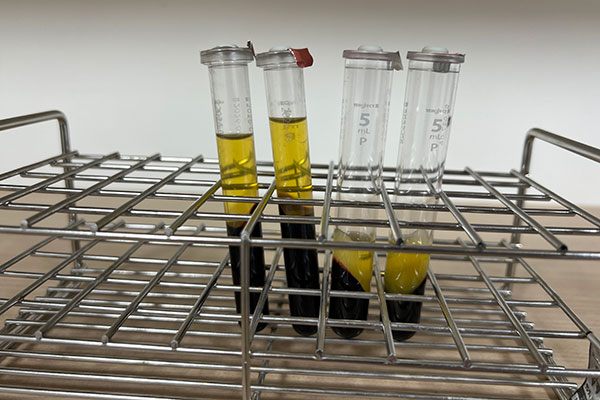術前に看護師さんによる採血を行い、術中に使用する血清成分と血漿成分を遠心分離機にかけ取り出します。
