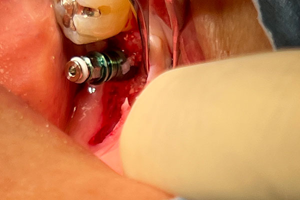 翌日の消毒と1週間後こ抜歯のあとは、経過観察を行い4〜6ヶ月ほど骨が再生されるのを待ちインプラント体埋入手術に移行する予定です。